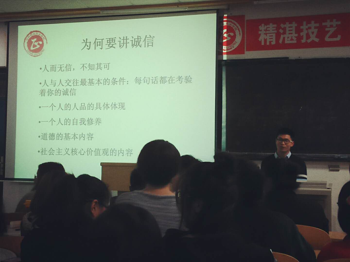 为培养大学生的诚信精神,提高同学们自身素养。我系于2017年10月28日在机场校区北院第一多媒体举办了以“道德讲堂,家庭美德之诚信篇”为主题的教育活动。本次讲堂由张海迪老师主讲,马侨丹老师以及医学系17级全体学生干部到场参加此次教育活动。