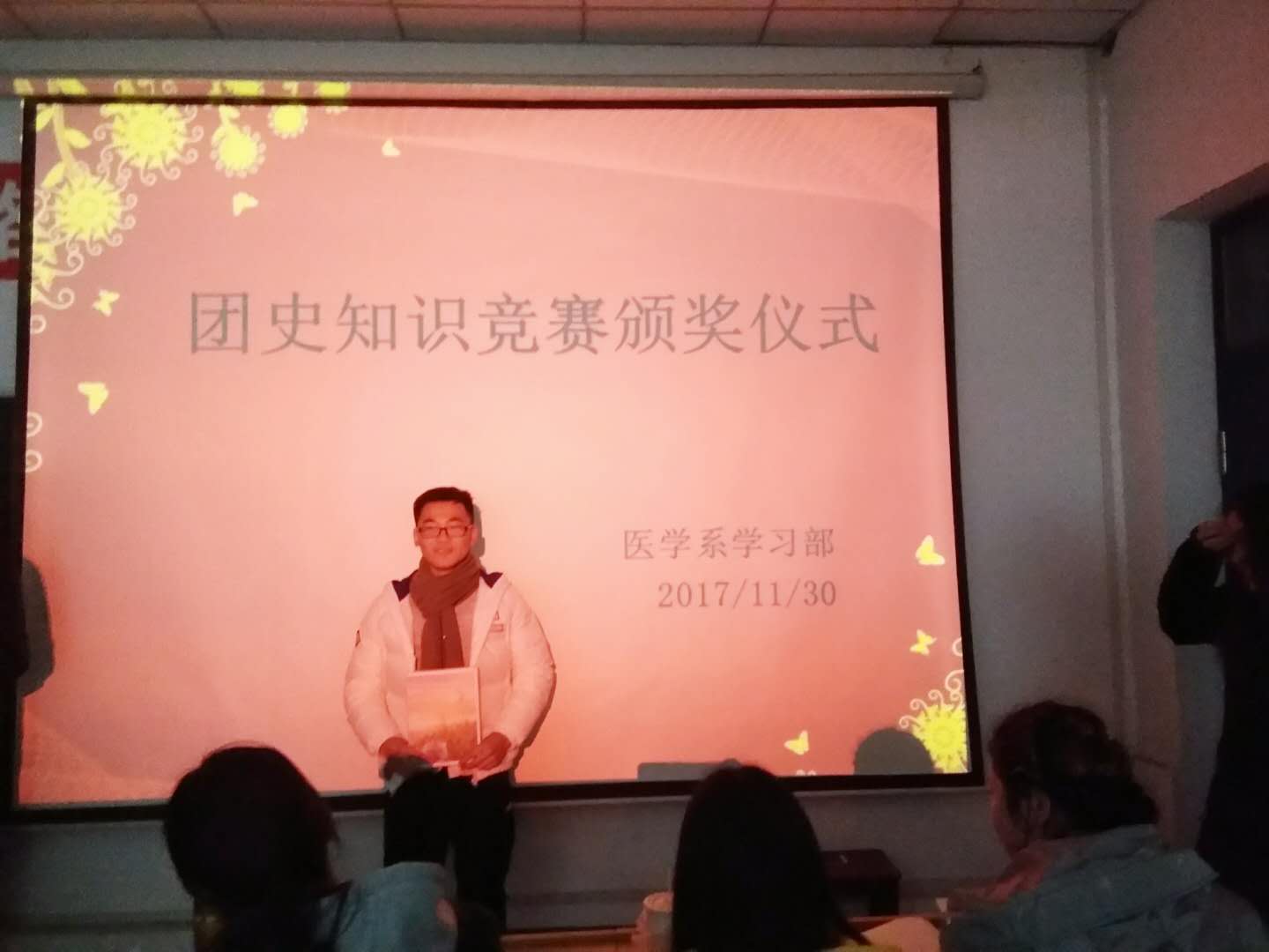 我系于2017年11月30日在机场校区北院第五多媒体召开了“团史知识竞赛表彰大会”对获奖同学进行了表彰。