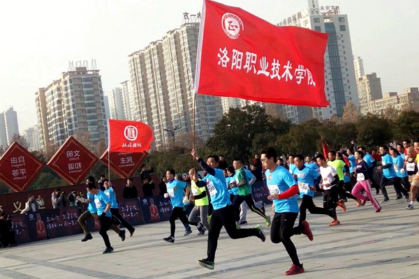 1月1日上午,我院百余名学生作为5000米迷你马拉松代表队,参加了2018年洛阳市“酒祖杜康杯”元旦长跑比赛暨迎新年马拉松赛活动。该活动由洛阳市体育局、洛阳市教育局、洛阳市民政局、洛阳市公安局、洛阳市卫生和计划委员会、洛阳市总工会、中共洛阳市委市直机关工作委员会、洛阳市妇女联合会、中国共产主义青年团洛阳市委员会、洛阳市残疾人联合会主办。