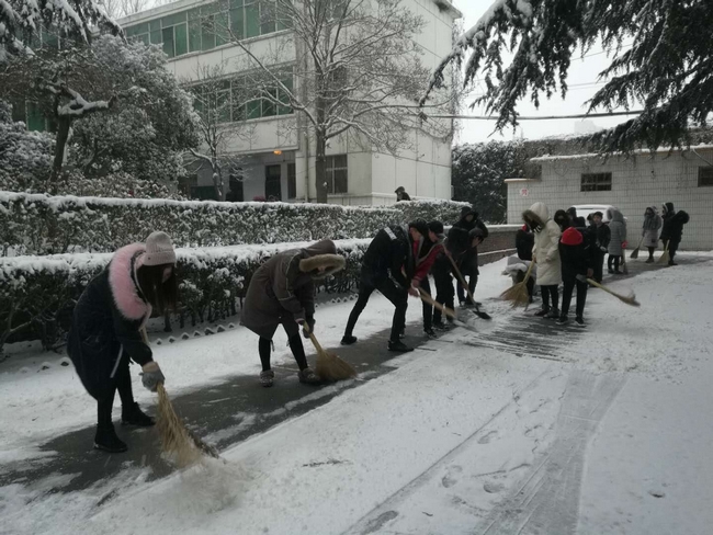 忽如一夜春风来,千树万树梨花开。今冬第一场大雪,使今早的校园成了粉妆玉砌的世界,这让大家在享受美景的同时,也给老师和学生的室外行动带来了不便,直接影响到师生的出行,具有极大的安全隐患。为了确保师生们生活和学习不受雪天路滑的影响,学院领导及早布置安排,在外参加重要会议的朱美荣书记和程相朝院长就防冻害除冰雪工作作出专门指示,其他院领导分别到联系院系召开专题会议布置防冻害除冰雪预案,党政办、教务处、后勤基建处、安全保卫处等部门根据职能积极行动,以确保师生们学习生活秩序正常。