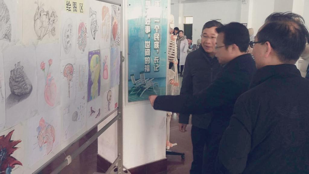 朱美荣书记和孙建勋副院长参观了医学系学生的手绘作品