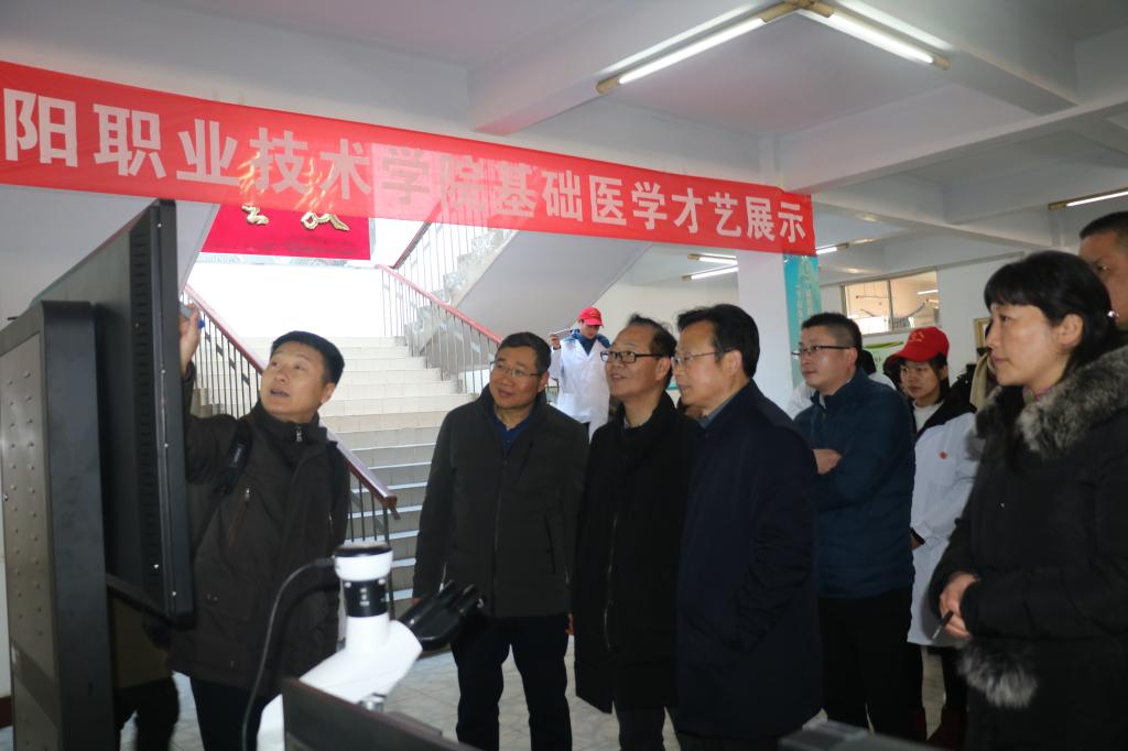 2018110-11,由教务处主办,医科三系承办,医学系协办的“基础医学才艺展示”在洛阳职业技术学院机场校区南院大厅隆重举行。学院领导、教职工与一千余名同学共同参观了这场医学与艺术相结合的视觉盛宴。朱美荣书记和孙建勋副院长亲赴现场参观了同学们的绘图作品、解剖模型及医学系数字人教学设备。朱书记对同学们手绘的作品表示了肯定。
