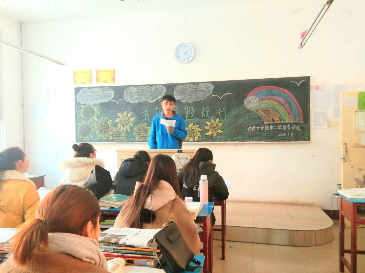 为丰富同学们假期生活,提高假期生活质量。我系于2018111日在机场校区北院举行了以“寒假规划”为主题的团课教育。