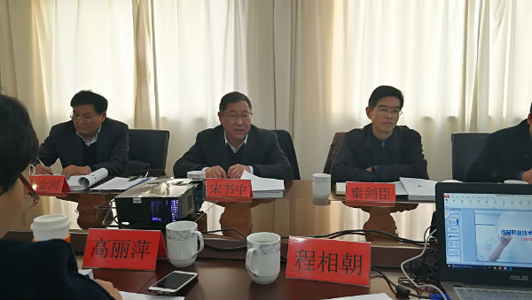 院长程相朝教授汇报《纲要》起草情况,《纲要》从基础与形势、办学定位与目标思路、主要任务、措施与保障等四个方面详细、科学的阐述了2018年-2025年洛阳职业技术学院建设发展规划。