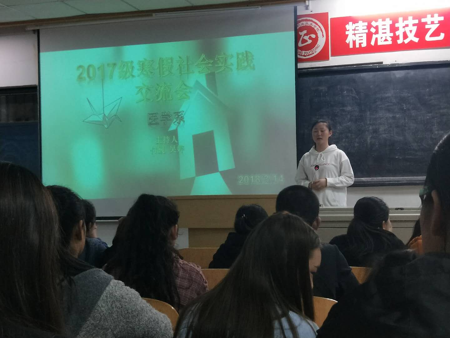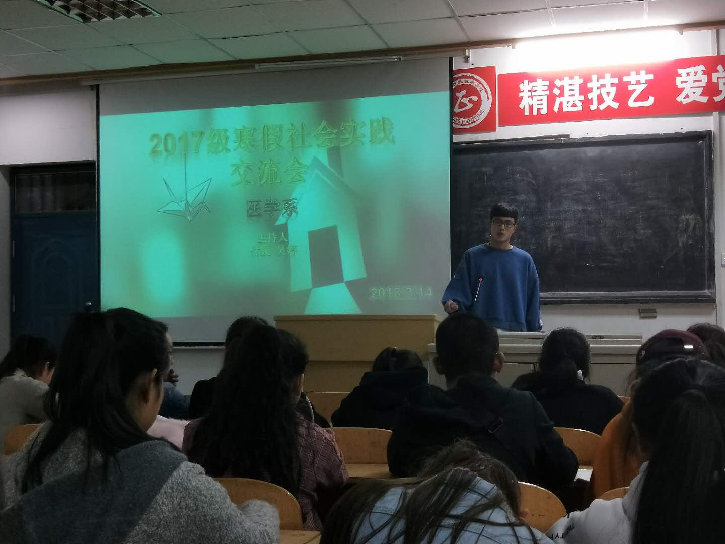 为培养同学们创新精神和实践能力,提升同学们的综合素质。我系于2018年3月14日在机场校区北院第一多媒体,以评选出的二十位积极参加社会实践的先进个人为代表,分享个人社会实践心得。