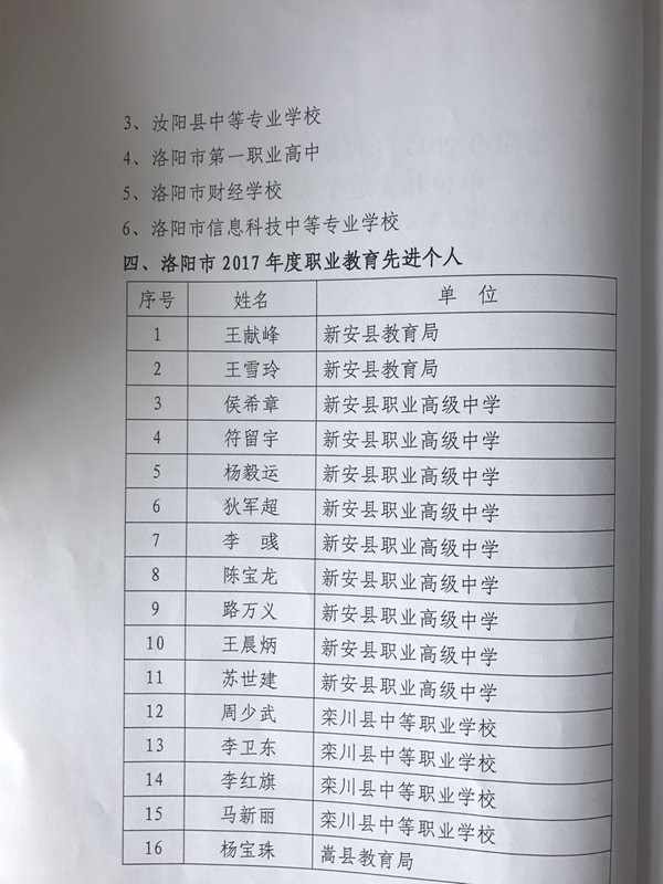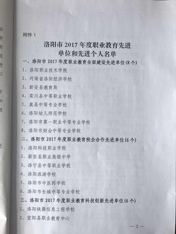 祝贺我校被评为洛阳市2017年度职业教育全面建设先进单位