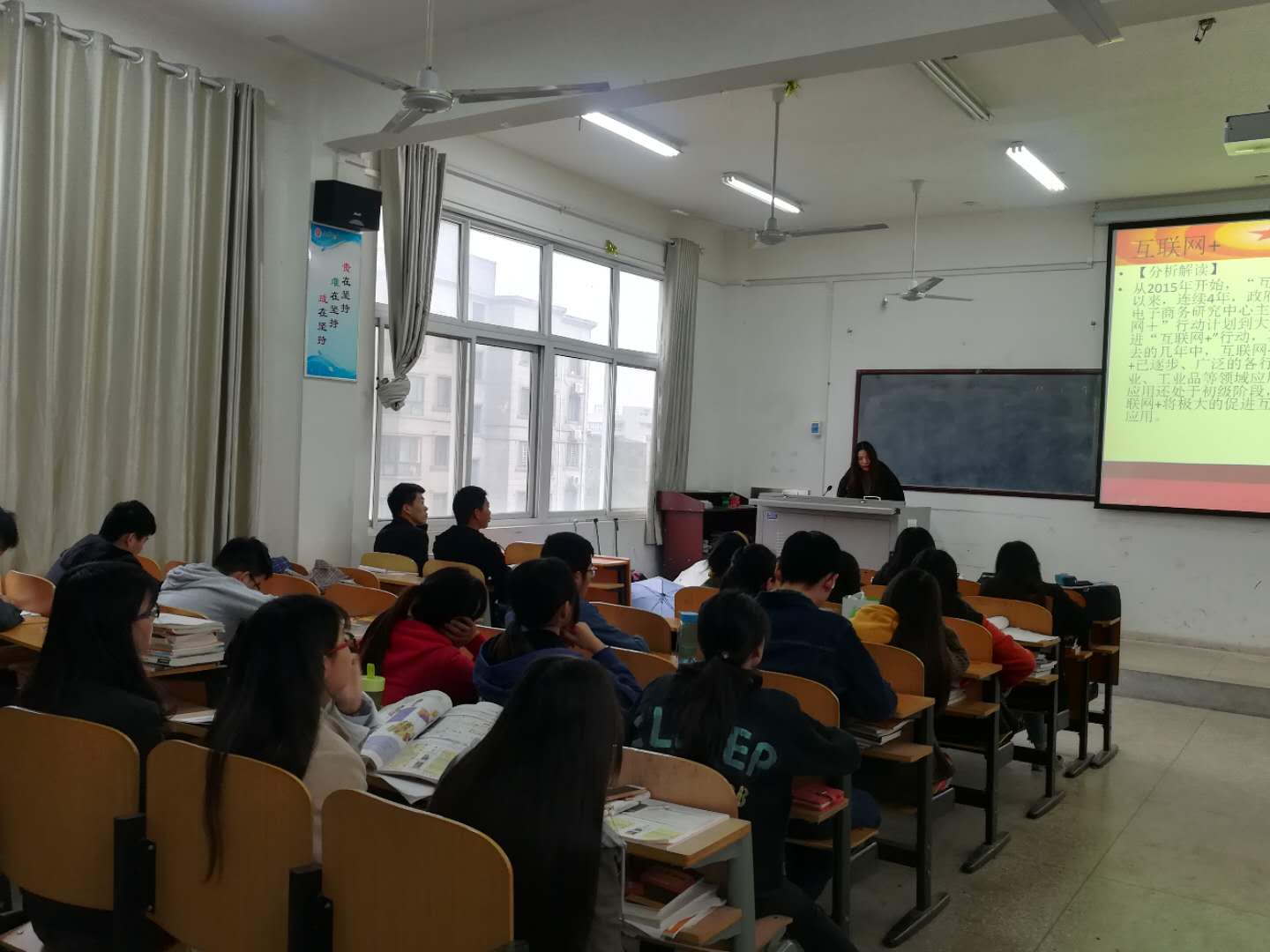 接院团委通知,2018年4月12日下午,经济管理系16、17级辅导员进班为同学们展开了学习“十九大、两会精神”的主题班会,利用团课学习时间一起观看了李克强总理做的政府工作报告。同时辅导员制作了PPT,带领着同学们对“两会关键词”进行解读。 第十三届全国人民代表大会第一次会议开幕,国务院总理李克强代表国务院向大会报告政府工作。在报告中,分别提到了跟电商/互联网相关的包括:互联网+、网上零售、跨境电商、工业互联网、共享经济、互联网+农业、互联网医疗、电子政务、互联网金融、大数据等十大行业关键词。 通过此次主题班会的召开,让同学们更深刻的认识到此次政府工作报告,与我们的工作和生活息息相关,作为当代大学生,要积极关注时政热点,勇敢的表达自己的观点,形成自己的政治态度。为中国特色社会主义事业的建设贡献出自己的一份力量!