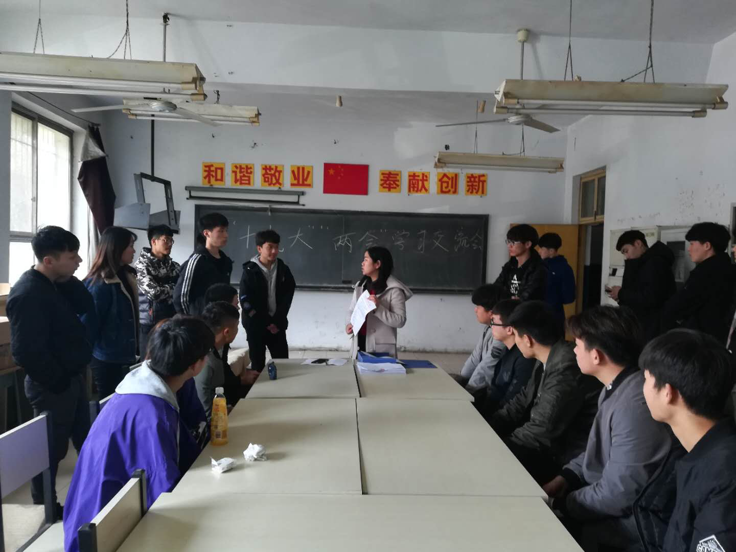 活动过程中,学生干部纷纷发言,把自己的学习心得分享给大家。通过举办此次活动,大家一致认为,要紧密团结在以习近平同志为核心的党中央周围,以习近平新时代中国特色社会主义思想为引导,全面贯彻落实党的十九大精神和全国两会精神,紧密结合自身实际和专业特点,扎实学习、苦练本领,为实现中华民族伟大复兴的中国梦而不懈努力。
