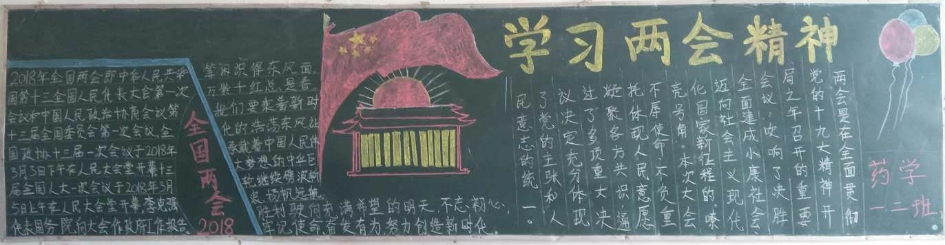 为了使同学们深入学习贯彻两会精神,药学与检验系于4月26日组织开展了以“两会”精神为主题的板报、手抄报活动。这次主题板报活动,吸引了众多学生参加活动,他们用丰富多彩的内容展示我系要以习近平新时代中国特色社会主义思想为指导,持续深入学习好、宣传好、贯彻好全国两会精神,认真学习领会习近平总书记在两会期间发表的系列重要讲话精神的决心,也展示了药检系师生昂扬向上、奋发有为的精神风貌。