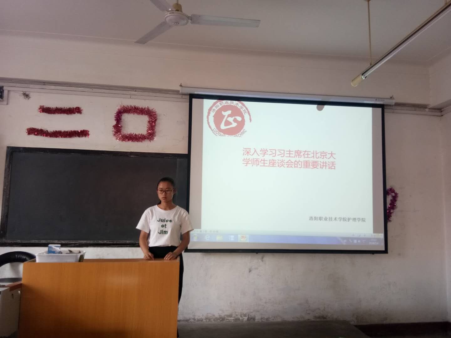 护理学院团总支组织召开了以“新时代·新青年”为主题的团课教育,带领全体青年学生学习了习近平总书记在北大师生座谈会上的讲话,并组织团干部观看《共青团公开课·团的光辉历史》以此纪念五四爱国运动99周年。