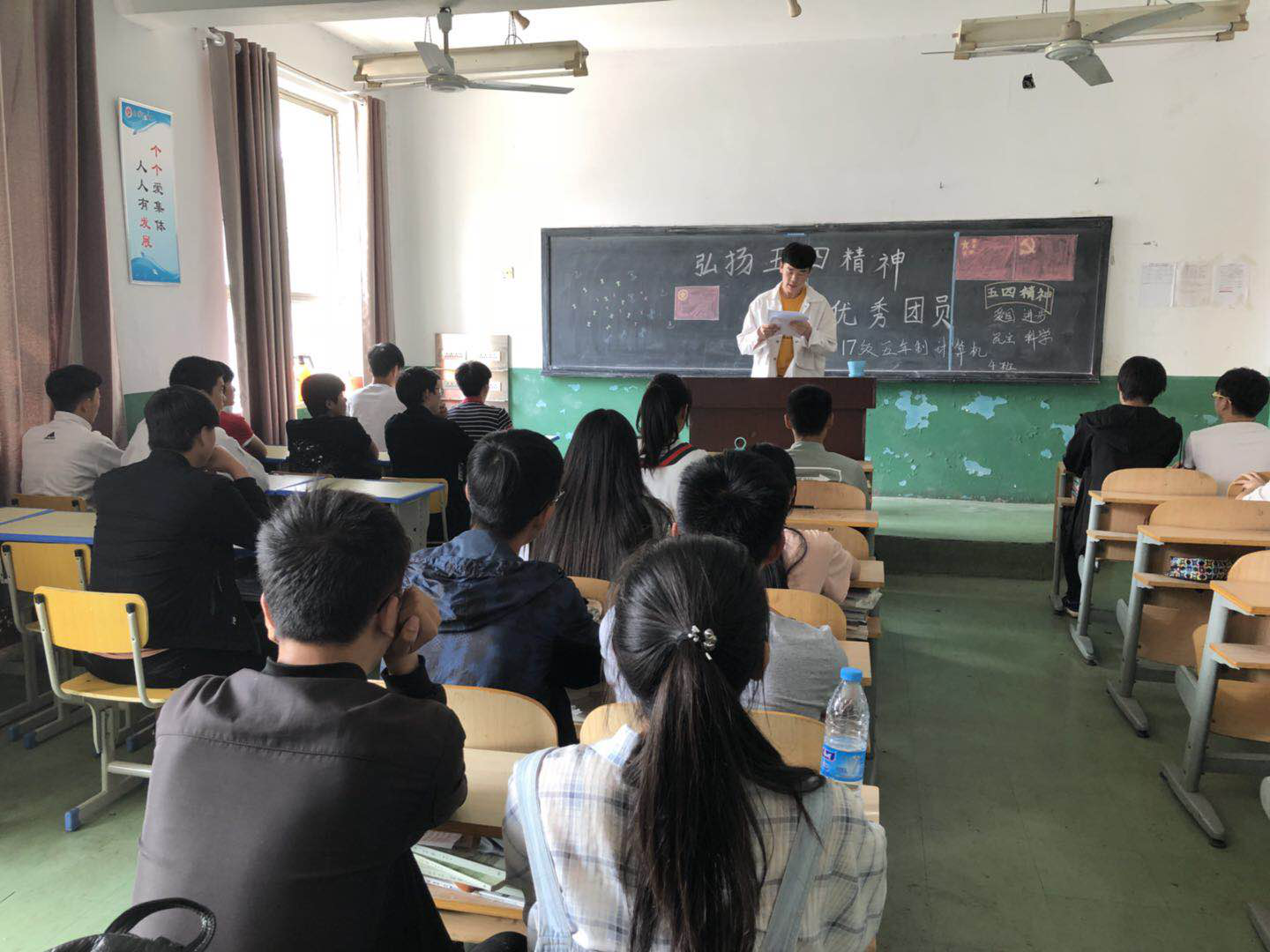 接洛阳职业技术学院院团委通知,2018年5月10日下午,经济管理系17级五年制计算机4班师生在机电楼204教室举办了以“弘扬五四精神,争做优秀团员”为主题的班会活动。本次活动由班主任和宣传委员主持,全体学生为活动主体对象, 主要目的在于弘扬五四精神,展现新时代新团员的魅力风采。