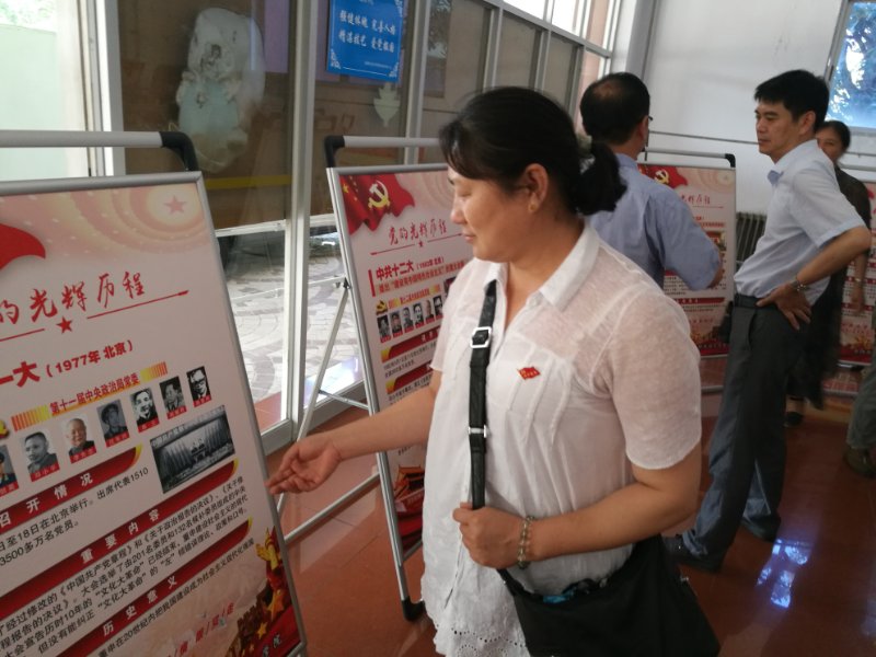 会议结束后,全体党员参观学习“党的光辉历程”展板。希望大家向他们学习,为学院发展作出积极贡献。