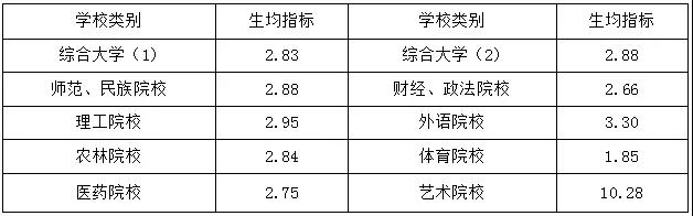 普通高等学校十二项校舍建筑面积生均总指标(㎡/生) 表1