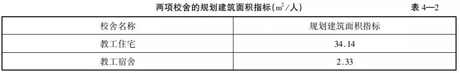 ①大学、专门学院以主管部门批准的全校教职工人员编制总数为基本参数的两项校舍规划建筑面积指标不得超过表4的规定(各类学校的指标相同)。