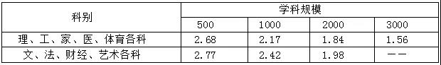 表1 按学科分的图书馆建筑面积指标 单位:㎡/生