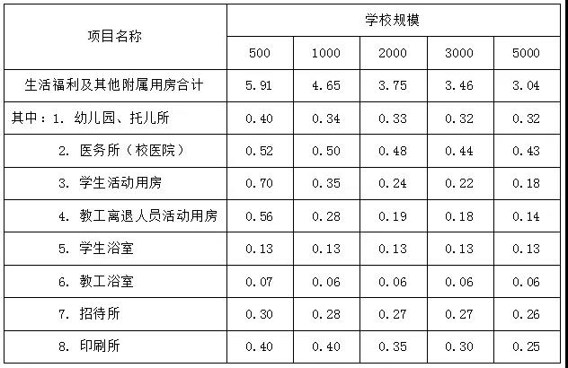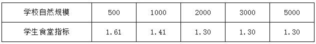 注:少数民族的清真食堂按就餐人数,其生均建筑面积指标在上表基础上增加0.5㎡/生