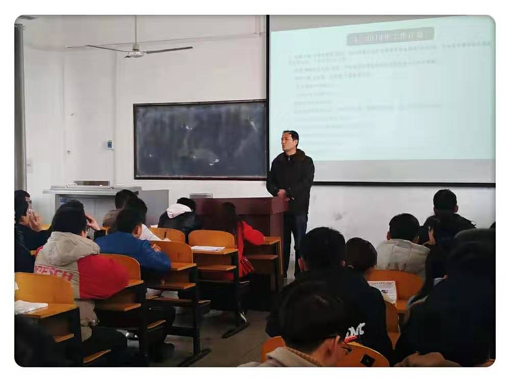 会议伊始,团总支副书记李润鑫就2018年团总支开展的各项工作进行了汇报,回顾了上个学期团总支举办的各项活动,记录了团总支的成长与进步。并展望规划了2019年团总支主要工作及活动。有总结才会有进步,成绩只会停留在过去,新的一年我们将要迎接新的工作,新的挑战。接着邢老师安排本周及近期的工作。最后由郭书记讲话,郭书记首先对辛勤付出、努力工作的学生干部们给予了充分的肯定与赞赏,并希望在新的学期里,学生干部们能以更好的心态与干劲投身于本学期的工作当中去。希望我院的团总支能越做越好,打造出属于自己的品牌。让我们共同演绎自己的青春,一步一步走向成功!