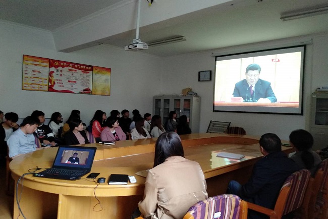 为了纪念五四运动100周年,弘扬“爱国、进步、民主、科学”的五四精神,培育我院师生热爱祖国、奋发有为、敢于担当的新时代精神风貌,按照学院党委宣传部的要求,我院于2019年4月30日上午10:30,组织无课师生在二楼会议室集中观看了纪念五四运动100周年大会直播,并认真学习习近平总书记在大会上发表的重要讲话。