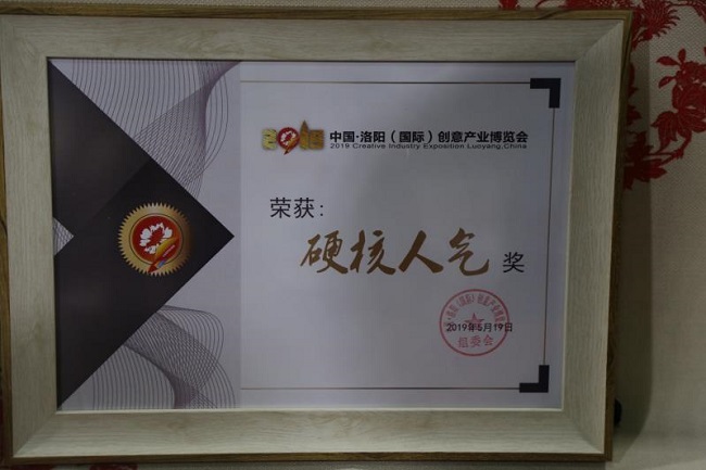 本次展会,我院精心准备,派出由专业老师和剪纸艺术社、文物鉴赏与收藏社、食品雕刻艺术社学生组成的文化创意团队,展示文物文创艺术品、剪纸艺术品和食品雕刻艺术品,并为观众提供现场互动体验。高超的文创技艺、精美的雕刻作品、良好的互动体验,得到逾千名观众的围观与热捧,展位天天人头攒动,体验者纷纷排队等候。洛阳电视台现场主动采访,主办方密切给予关注。最终,我院展位获得组委会颁发的“硬核人气奖”。