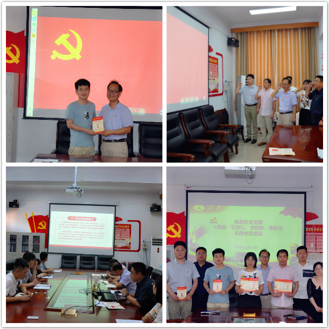 2019年6月13日,教务处党支部“忆初心,学榜样,勇担当”主题党日活动在机场校区北院三楼党建会议室举行。