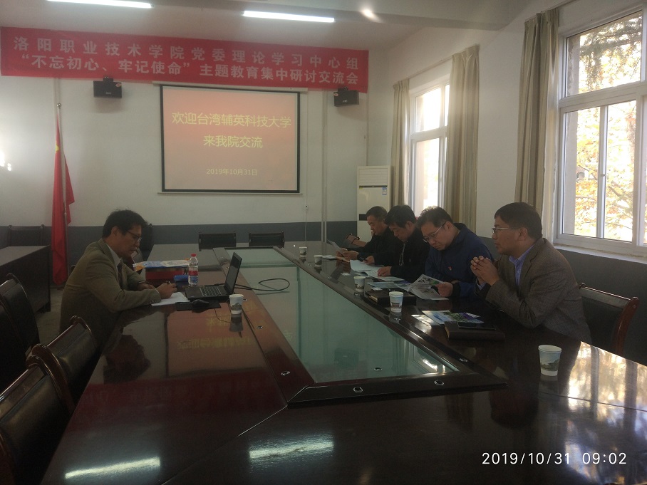 座谈会上张志友院长介绍了洛阳职业技术学院的发展现状以及护理专业建设情况。叶金麟副处长对我院的热情接待表示感谢,并详细介绍了辅英科技大学的办学情况。台湾辅英科技大学创建于1958年,位于高雄,是台湾最大的健康专业大学,现有护理学院、环境与生命学院、医学与健康学院、人文与管理学院四个学院,开设有护理、助产及妇婴健康、环境工程与科学、医学检验生物技术、幼儿保育及产业等16个专业,尤其以护理专业在台湾最为知名,现在校生9500余人,办学层次有专科、本科及研究生。辅英科技大学目前与大陆合作的院校有武汉大学、广东医科大学、福建医科大学、新乡医学院、河南大学等60余所。双方随后对合作的专业、教师培训、学生交流等内容进行了讨论和交流。