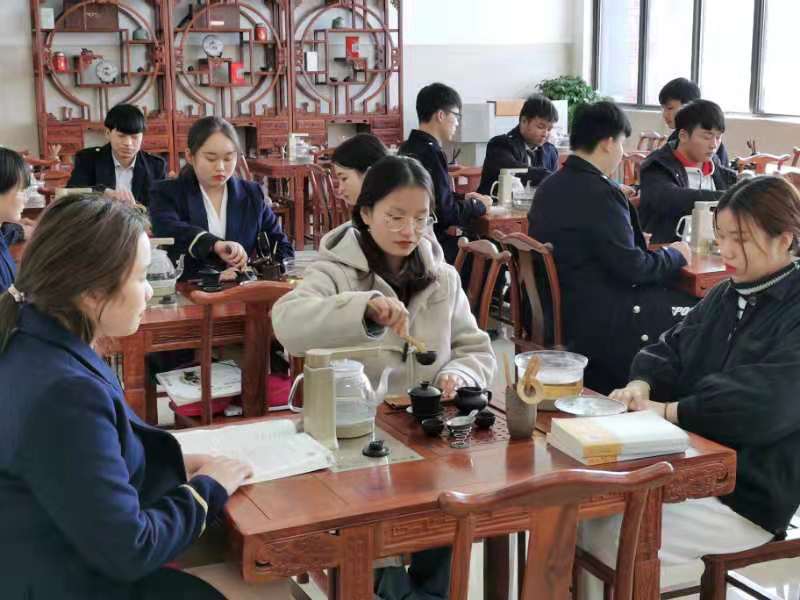 程院长走进正在建设中的陶瓷修复实训室、茶道实训室、修复艺术品展陈中心、形体舞蹈实训室等,查看询问建设情况,并进行指导。在茶艺实训室观看了学生的茶艺表演,在形体实训室观看了学生的商务礼仪展示、在烹饪刀工实训室查看了学生刀工实训课情况。