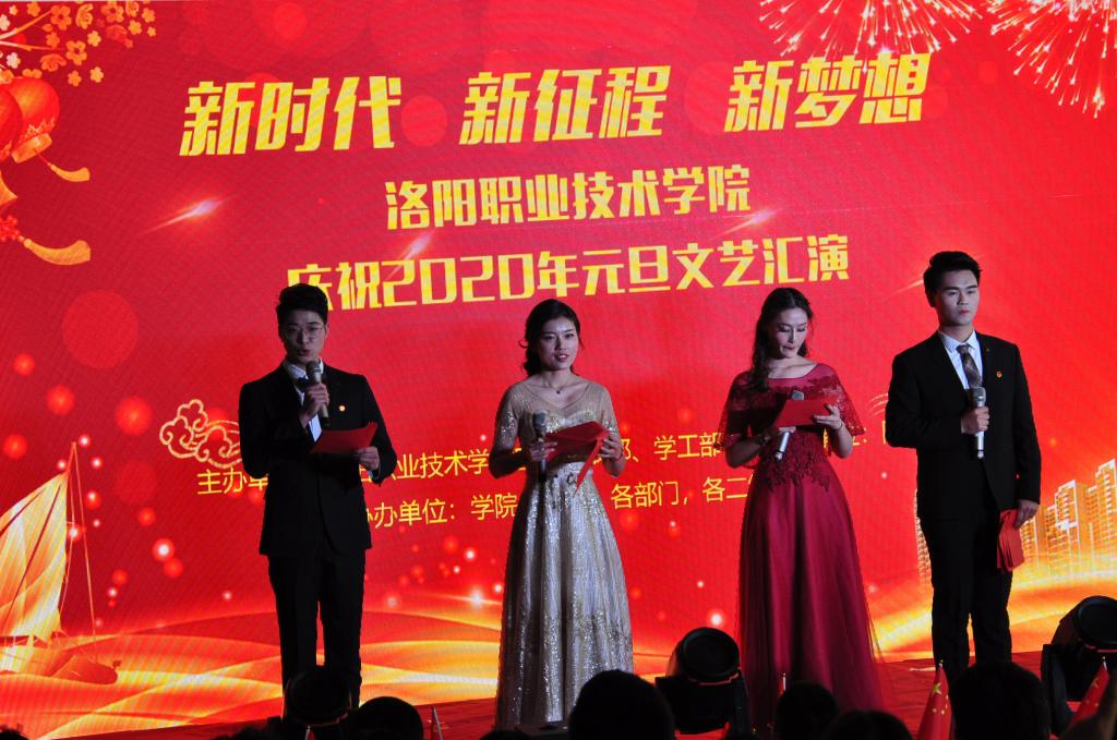 “凯歌高奏辞旧岁,一元复始气象新”,12月29日下午,洛阳职业技术学院“新时代,新征程,新梦想”2020年元旦文艺汇演在伊滨新校区举行。汇演活动由党委宣传部主办,学工部、院团委承办,院党委书记朱美荣、院长程相朝、副院长韩洪涛、副院长于幸福、党委委员朱豫豪、党委副书记胡珊出席本次活动。各部门、各单位负责人,各二级学院院长、书记,以及在校部分师生参加此次活动。师生们欢聚一堂,共享视听盛宴。