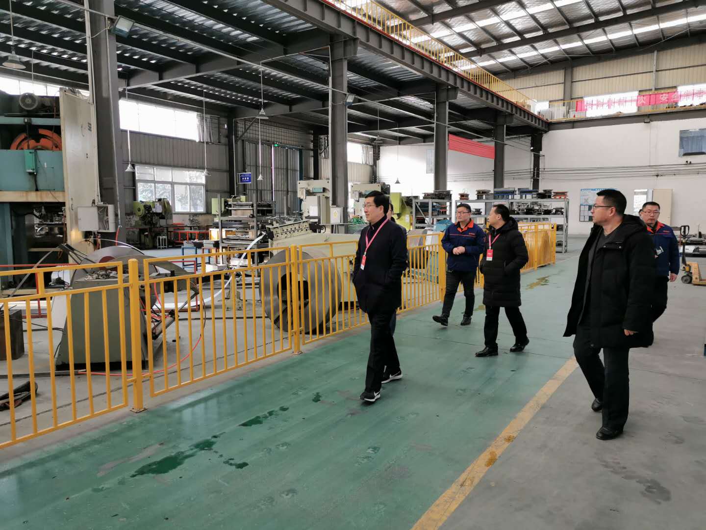 12月31日上午,院长程相朝、副院长韩洪涛带领教务处处长赵明、机电工程学院院长陈玉楼、汽车与轨道交通学院院长徐阁到洛阳震海家具有限公司参观考察,调研产教融合、校企合作有关事宜。洛阳震海家具有限公司副总经理王建辉、总工程师杨绍军、研发部部长许继峰以及人力资源部部长张雪刚等人陪同参观考察。