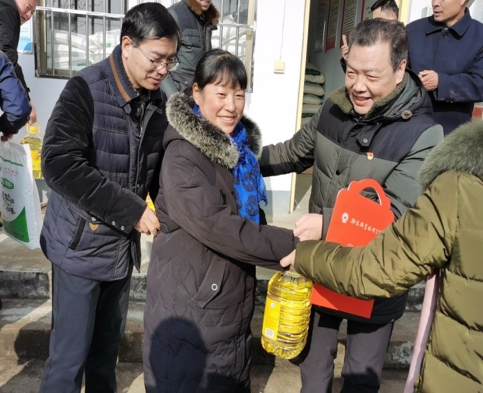 本次慰问,学院投入了27000元,为湾滩村群众购置了300袋面粉和300桶食用油,协调了300副春联。学院连续多年对全村乡亲(不仅仅是贫困户)进行慰问,让全村老百姓切实感受到党的温暖!