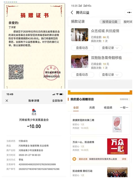 面对疫情,洛阳职业技术学院食品与药品学院的学生纷纷献出爱心,据统计,通过各种途径共捐款近800元。虽然个人的力量微不足道,但只要人人都贡献出一份力,这个力量就会很强大,最终打赢这场疫情防控阻击战。