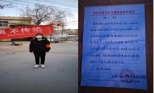 19电商技术302王继刚同学自2月6日起,在濮阳市范县安兴寺村参加疫情防护值班站岗志愿服务,在村口的劝导点执勤,负责对外来人员车辆进行登记和体温检测;同时积极帮助其它村干部在村里排查人口健康查情况。在疫情爆发严重时期,他挺身而出,为自己的家乡做出了自己的贡献,他的认真、踏实得到了村长和村民的一致好评。