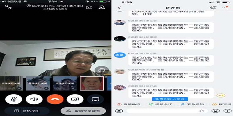 2020年寒假伊始,随着新冠肺炎这一场“没有硝烟的战争”在全国范围打响,文化与旅游学院在严格执行国家延期开学的同时,深入贯彻落实习近平总书记关于打赢疫情防控阻击战重要指示精神,做到“停课不停教、停课不停学”。同时依据教育部《关于开展“共抗疫情、爱国力行”主题宣传教育和网络文化成果征集展示工作的通知》、河南省委高校工委、河南省教育厅《关于组织全省高校上好2020年春季开学思政第一课的通知》以及学院《关于在疫情防控期间开展网络主题班会的通知》精神,我院积极响应,制定网络主题教育方案,近期,陆续组织各班级召开防疫主题网络班会,对学生进行爱国主义、生命安全、公共卫生和心理健康教育。