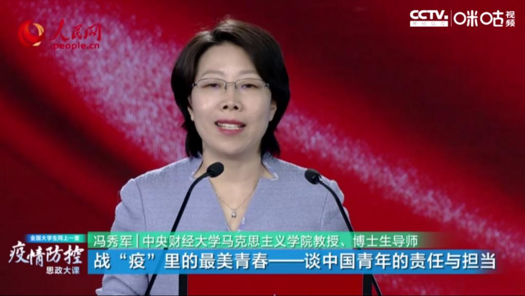 冯秀军教授以《战“疫”里最美青春——谈中国青年的责任与担当》为题,深情讲述在抗击疫情中挺身而出,勇敢逆行的青春身影,引导大学生勇于担当责任与使命。将小我融入大我,将青春融入到祖国。
