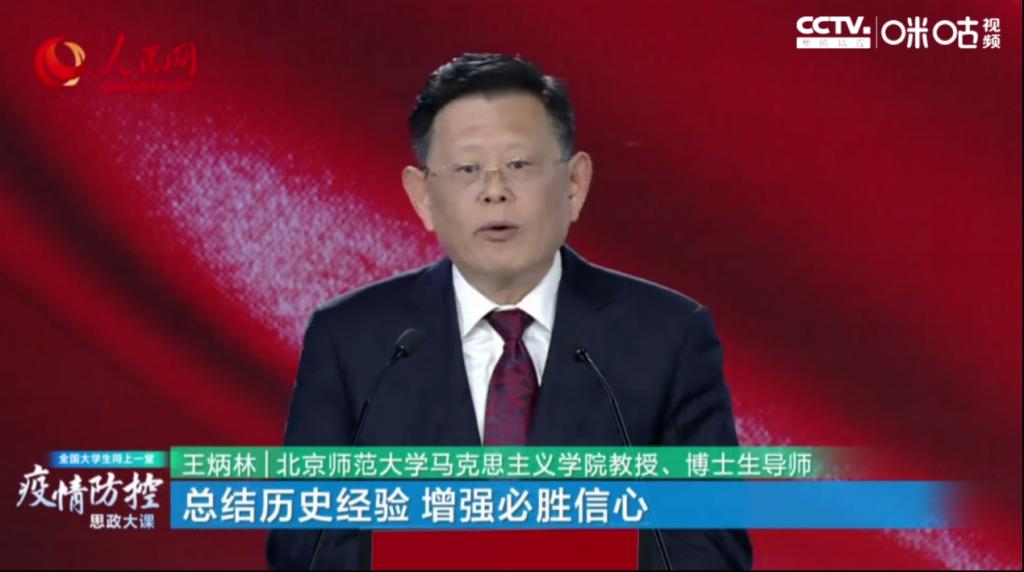 王炳林教授以《总结历史经验,增强必胜信心》为题,从中国历史上的磨难及防疫斗争出发,分享中国人民从磨难中奋起、化危机为转机的历史经验和智慧。
