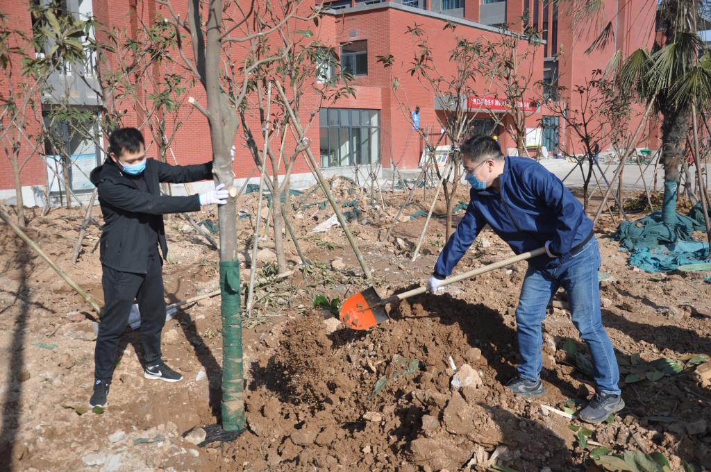 春回大地万物苏,植树添绿正当时。恰逢全民义务植树39周年和我国第42个植树节,314日上午,学院部分党员同志和教职工,来到伊滨校区水莲寨街道路两边教学楼旁开展义务植树活动,实现疫情防控与绿化校园两手抓。
