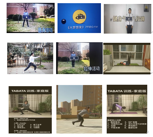 为更好地指导学生加强体育锻炼,体育教学部发挥专业优势,积极组织体育教研室的部分教师拍摄适合居家锻炼的视频,分别制作了《居家热身操》、《健身操--众志成城,抗击疫情》、《健身操--大梦想家》、《力量练习》、《体能训练》、《核心练习》、《全身拉伸放松练习》等视频,指导学生居家进行抗“疫”锻炼,希望能在疫情防控期间给广大师生提供一份健身指导。任课教师通过“学习通”、钉钉、微信、QQ等网络平台进行网络视频监控,让居家学习的学生增强身体素质、调节情绪、规范生活方式,促进身体健康,共同迎接战“疫”的胜利。