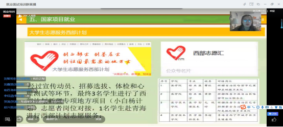 培训中,马侨丹从就业形势和就业途径等两方面进行讲解。她说,由于受到新冠肺炎疫情影响,毕业生要加快转变传统求职方式,充分利用互联网进行供需对接,实行网上面试、网上签约和网上报到。鼓励毕业生面向基层,实现多渠道灵活就业;动员学生自主创业、自谋职业,到基层和艰苦地区就业;激励学生积极主动参加共青团河南省委“百校千岗”大中专学生就业精准帮扶活动和我校春季网络招聘会等;引导学生响应国家政策号召,参与“服务西部计划”、“三支一扶”和“应征入伍”等选聘工作。刘智莉针对学生提出的问题进行在线答疑。
