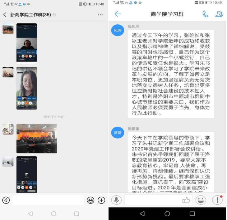 商学院全体党员及教师会后结合本职工作,在微信群提交听课截图和百字学习心得。