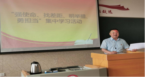 会上,李世恩书记带领全体教职工进行“强使命、找差距、明举措、勇担当”集中学习活动,会议深入研读朱美荣书记在“强使命、找差距、明举措、勇担当”集中学习研讨活动动员会上的讲话,号召全体教职工提高站位强使命、解放思想找差距、开放引领明举措、立足本职勇担当”,为学院跨越式大发展奋勇争先、贡献力量。