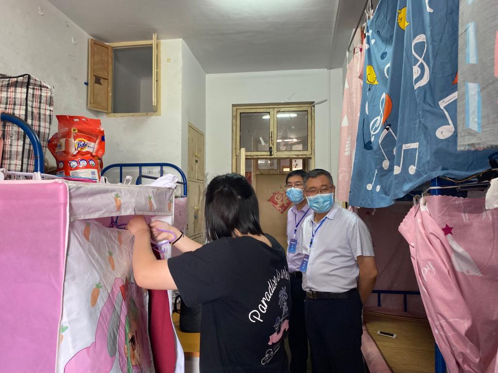 韩洪涛、姚克敏与首批返校学生亲切交谈,了解学生的返校方式、返校路线及身体状况等,叮嘱学生要注意自我防护,严格遵守学院疫情防控各项规定,按时完成学习任务。