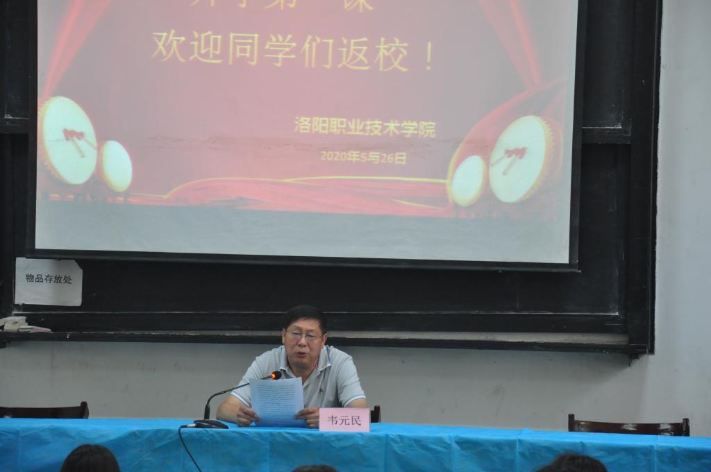 韦元民以《规范日常行为,确保校园健康平安》为主题,从严格落实校园封闭管理制度、继续实行戴口罩等日常行为规范、以小网格为单位落实晨午检及错峰就餐等制度,做好发热人员的应急处置等方面,对返校师生做出具体防疫要求。