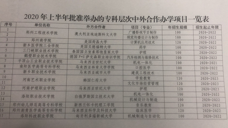 近日,省教育厅印发《关于郑州工程技术学院等14所院校举办中外合作办学高等专科教育项目的批复》(教外〔2020〕185 号),我校与白俄罗斯国立技术大学合作举办的机电一体化和机械设计与制造专业专科教育项目成功获批。