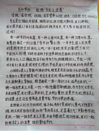 “米粒虽小,尤见礼义廉耻,节俭事微,可助兴国安邦”。为深入贯彻落实习近平总书记关于“坚决制止餐饮浪费行为,切实培养节约习惯”的重要指示精神,大力弘扬中华民族勤俭节约传统美德,培养大学生树立勤俭节约意识,我校组织全校学生开展了“厉行节约、杜绝‘舌尖上的浪费’”主题宣传教育系列活动。