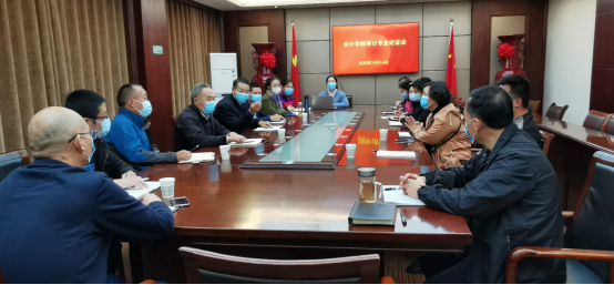 王长旭代表学院对与会的各位领导和专家能够参加会议表示衷心感谢,要求会计教研室汲取专家意见,继续完善申报审计专业有关资料,争取高质量通过学院专业评审。