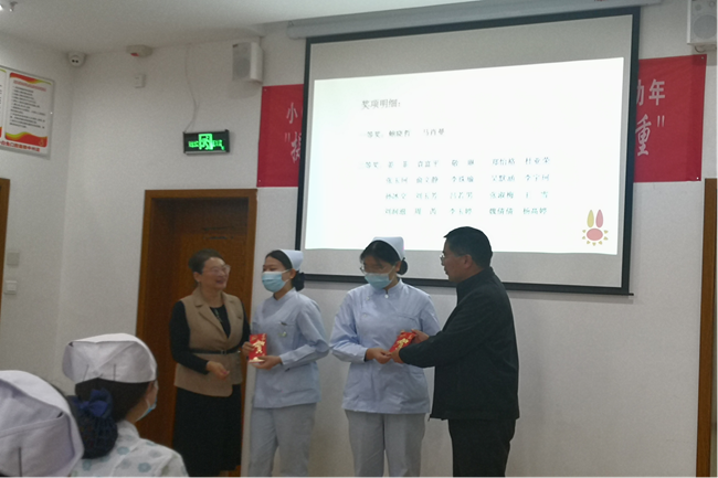 会上,与会人员重温了医务工作者誓言和小白兔企业文化,总经理王秋月对2018级护理专业口腔方向班的实习生们上一阶段的实习工作作总结,与会领导为实习生们送出寄语。张志友为优秀口腔科实习护士颁奖。