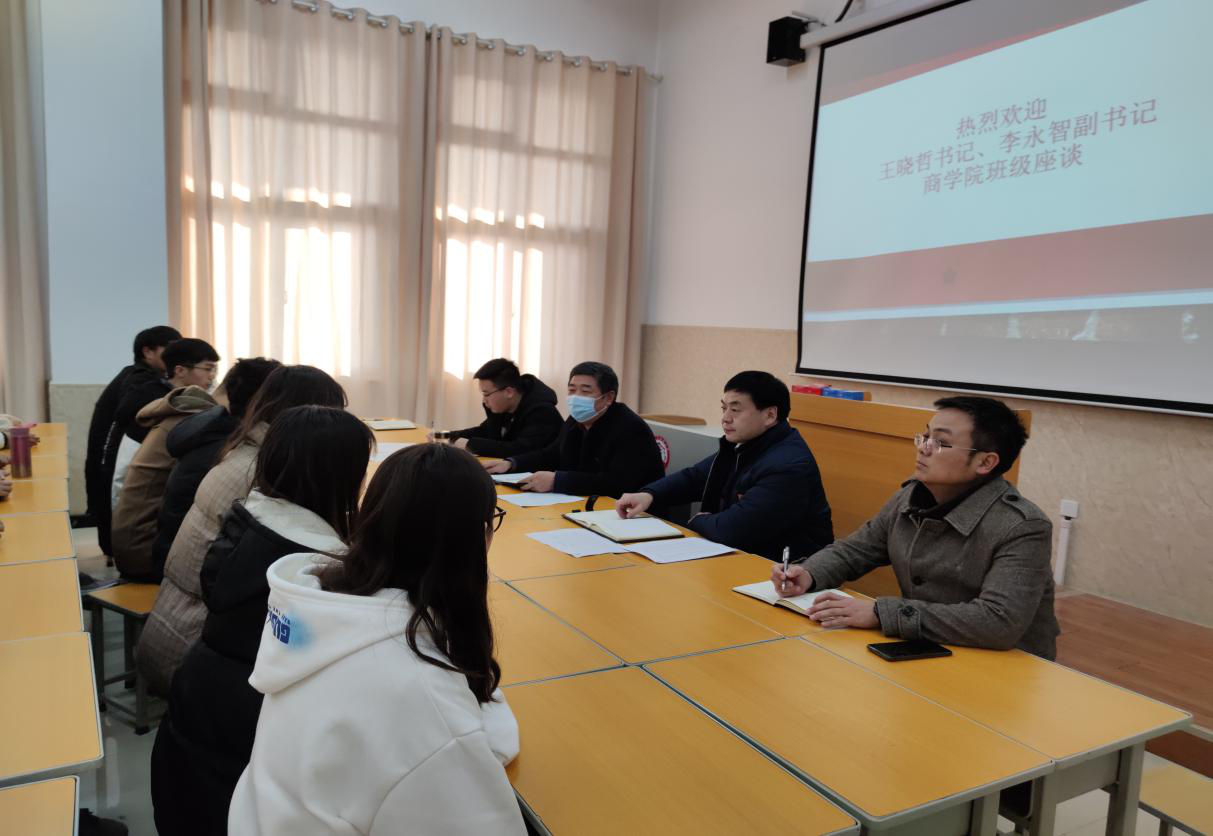 12月4日下午,学院纪委书记、监察专员王晓哲在伊滨校区2号楼402教室与20级电子商务301班、20级市场营销301班同学进行调研,纪委副书记李永智陪同调研。
