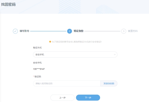 3、选择下图中的安全手机获取验证码后输入验证码。