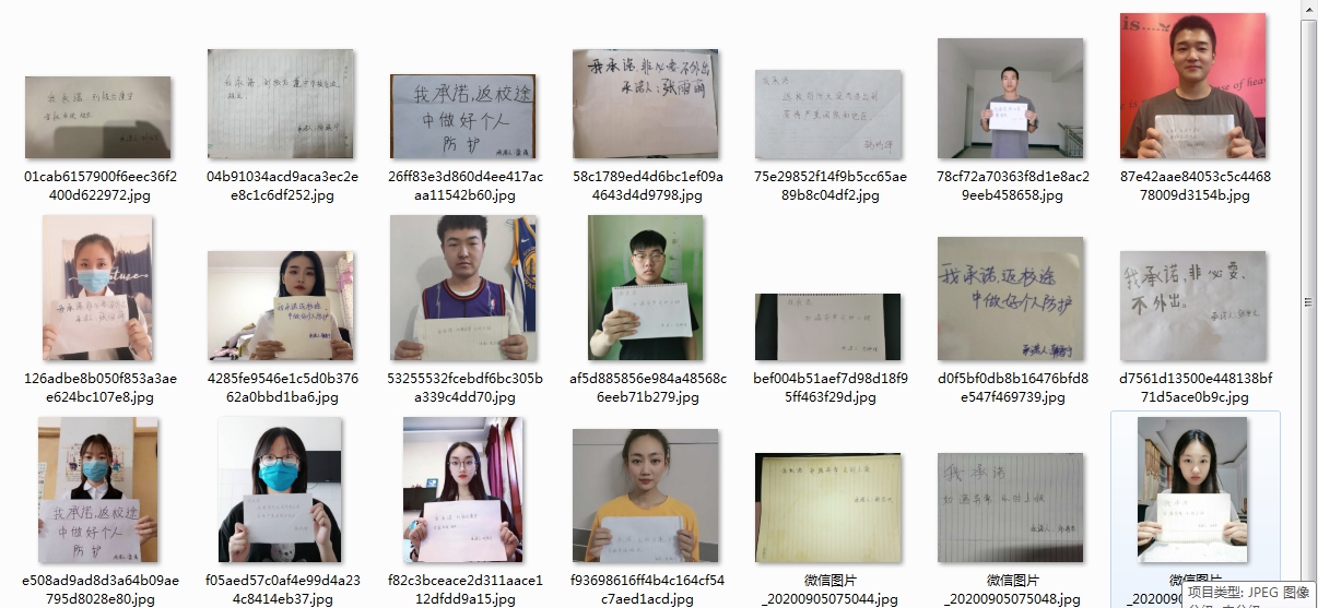 2019级学生收到倡议后,马上回信表示疫情防控面前,人人都是责任人,他们一定会严格遵守防疫规定,共同守好疫情防控这根线。有爱的隔空喊话、互发照片,你来我往,既是同学情谊的体现,也是我院开展相关教育的成果的展现。