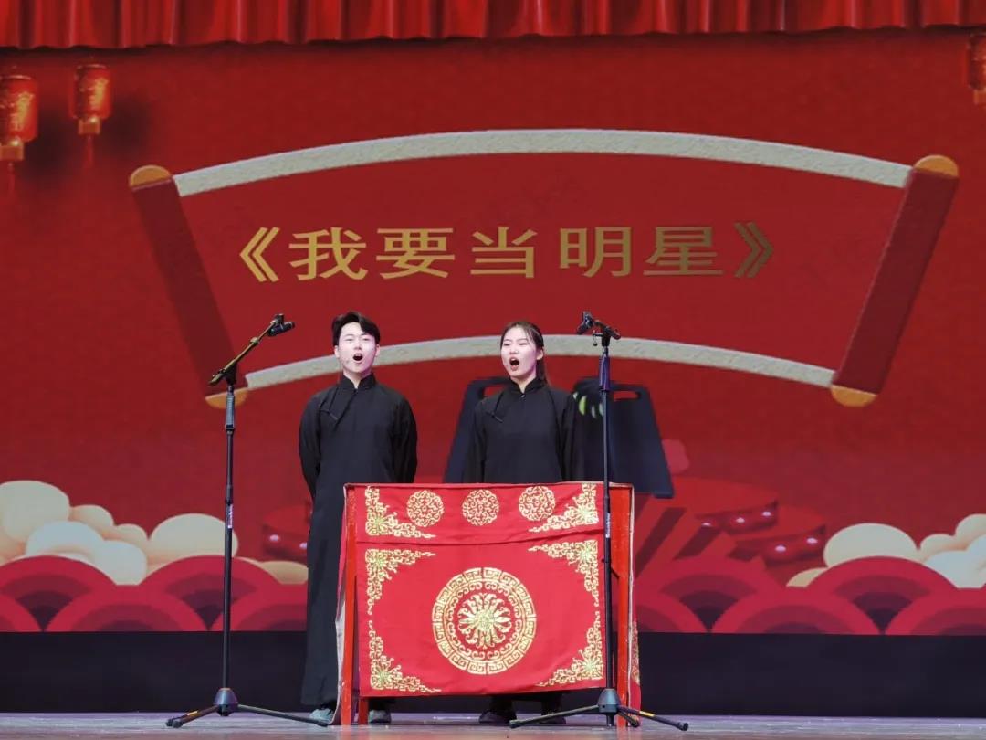 紧接着,机电工程学院一逗一捧的相声《我要当明星》幽默、风趣。