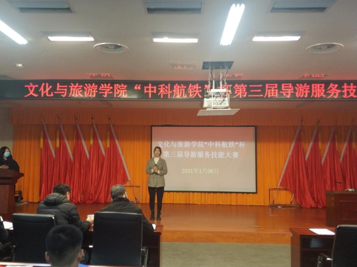 1月6日,文化与旅游学院主办的“中科航铁”杯第三届导游服务技能大赛在4号楼509隆重举行。出席本次大赛的领导有文化与旅游学院院长王伟浩、党总支副书记兼副院长田应功、副院长张志恒。